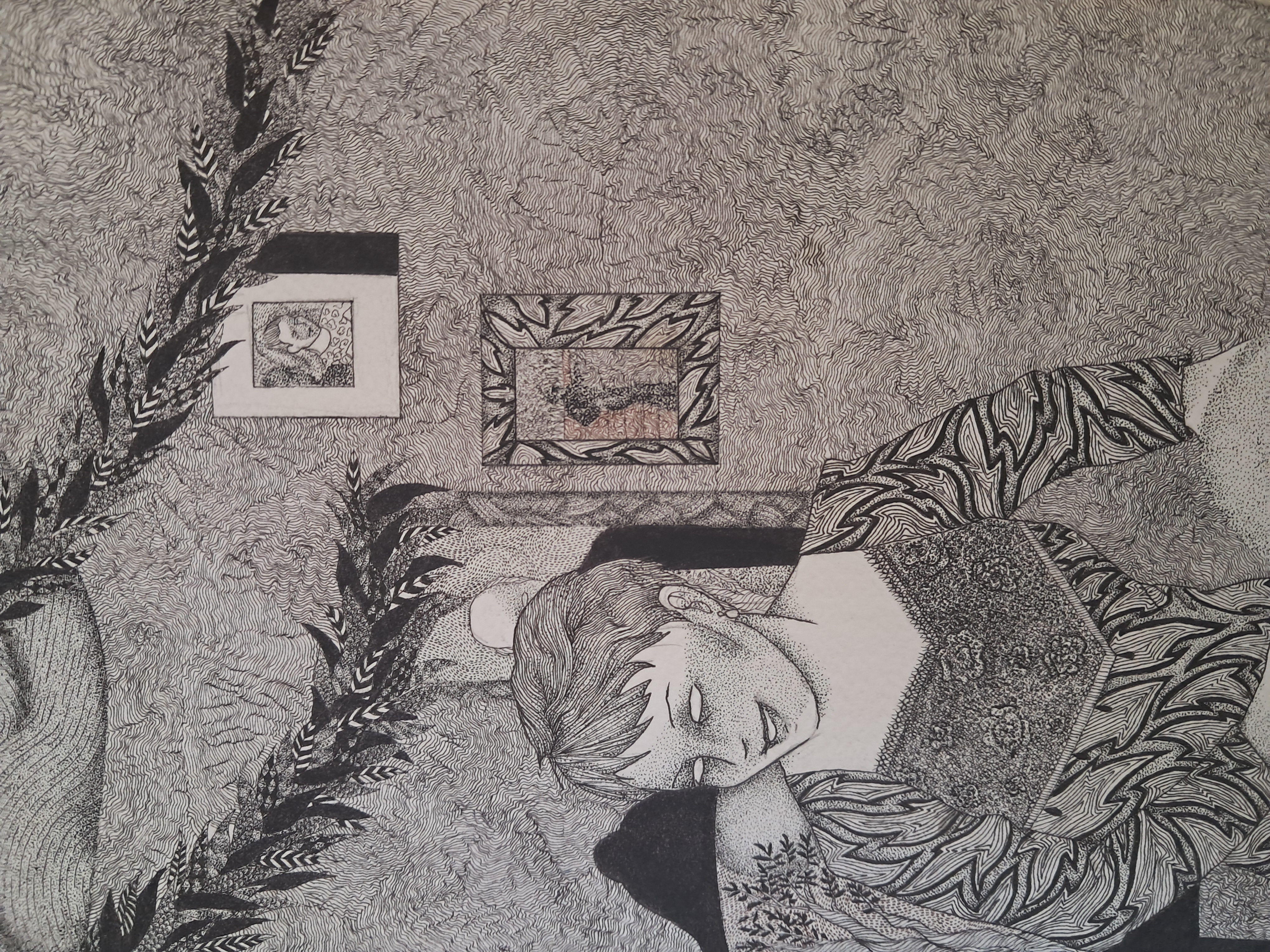 L'opera nasce dall'incontro con un racconto pubblicato su Fumo Magazine, e ne traduce la tensione sospesa in immagine.