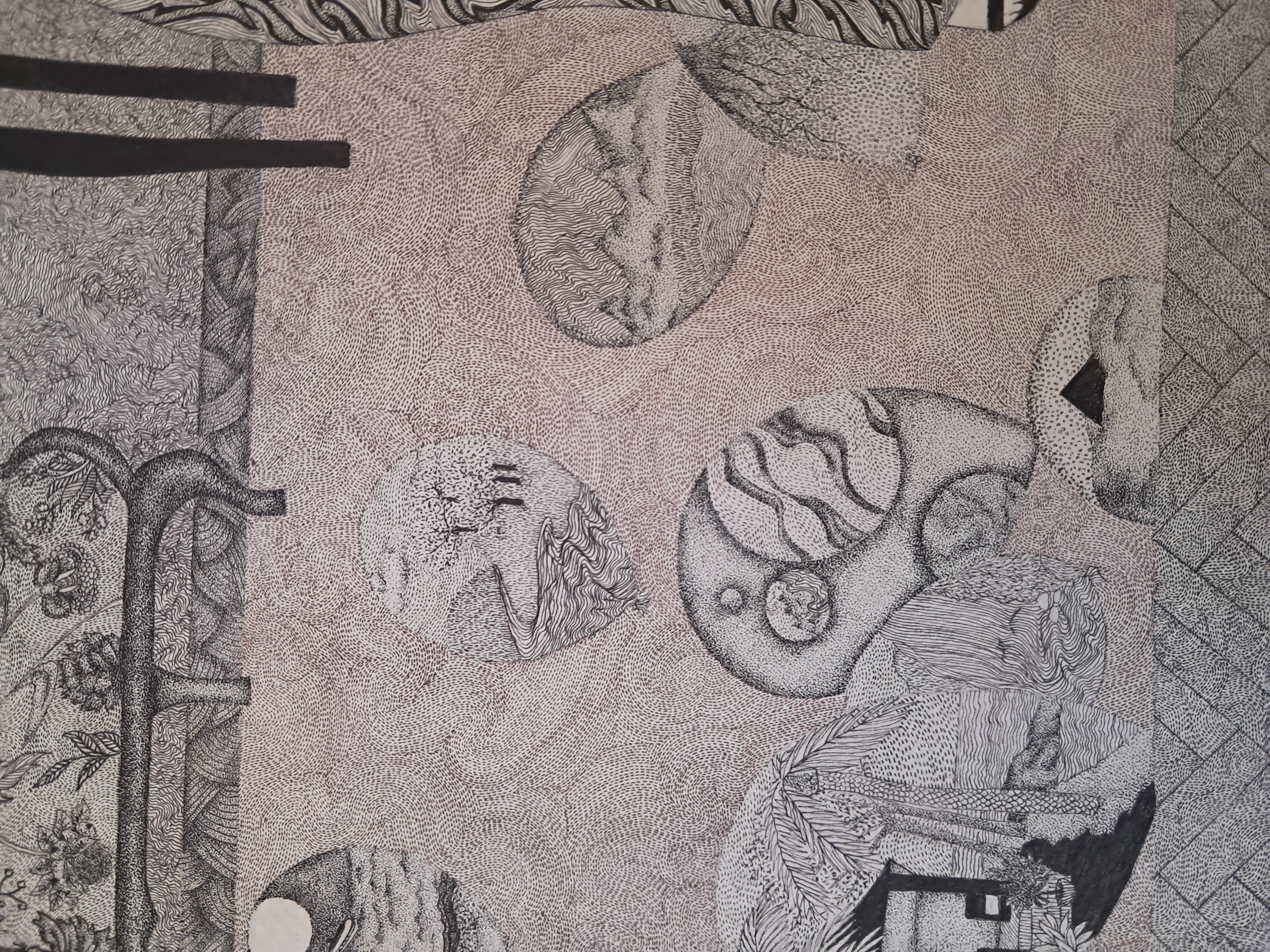 L'artista traduce la freddezza dello strumento digitale in un paesaggio vibrante, costruito da puntini e linee che, come atomi, compongono l'esistenza.